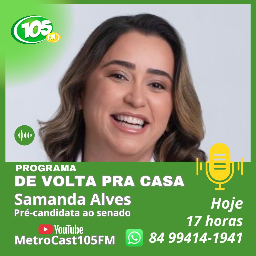A participação está marcada para às 17 horas, quando Samanda deverá abordar temas importantes do cenário político do Rio Grande do Norte, além de apresentar suas ideias, projetos e posicionamentos pensando nas eleições que se aproximam.