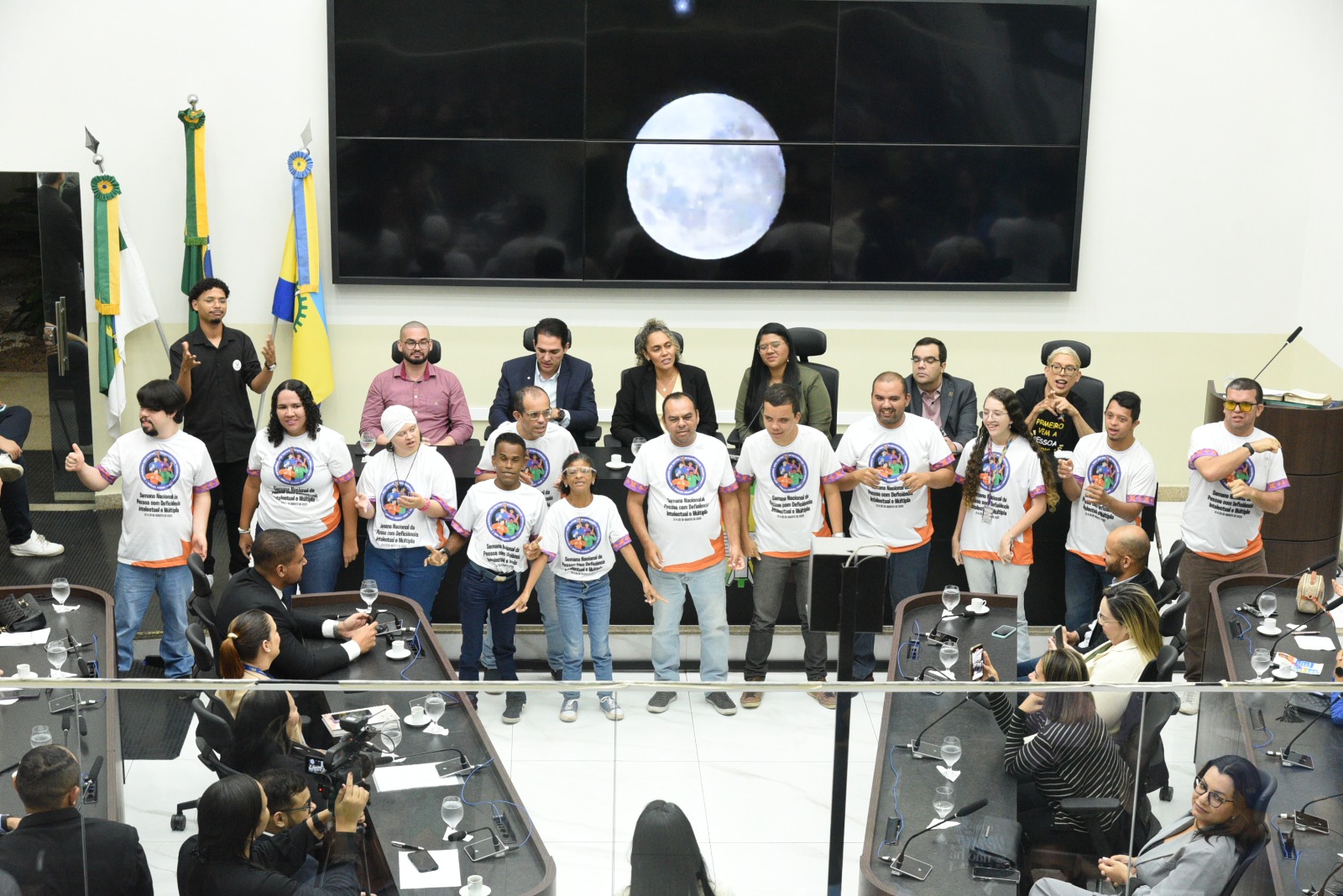 Além da vereadora propositora, compuseram a mesa diretora a vice-presidente da Casa Legislativa, vereadora Rárika Bastos, o deputado estadual, Kleber Rodrigues, o vereador de Natal, Tércio Tinoco, o diretor do Centro Especializado em Reabilitação de Parnamirim, Camilo Carneiro e o influenciador e ativista do inclusão e dos direitos da pessoa com deficiência, Ivan Baron. Esteve também presente o vereador Michael Diniz.