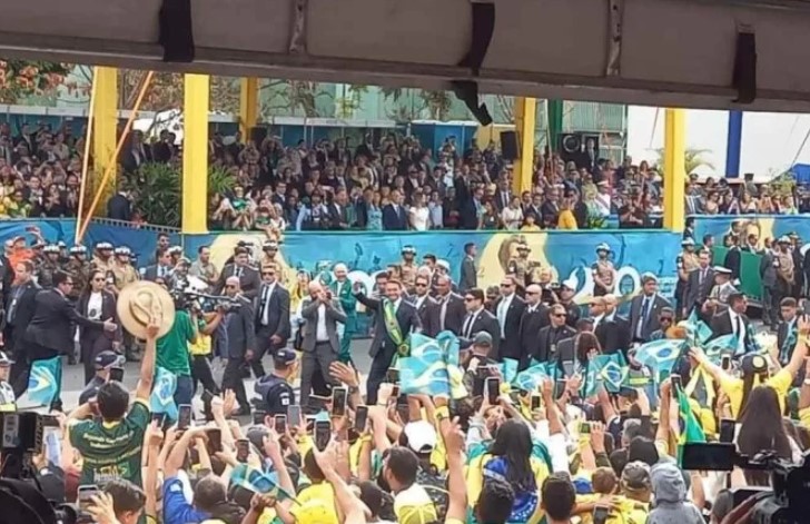 O movimento é parecido com um de 2019, primeira participação de Bolsonaro na solenidade como chefe do Executivo federal, quando o titular do Planalto desceu do palanque de autoridades para acenar ao público presente no local.