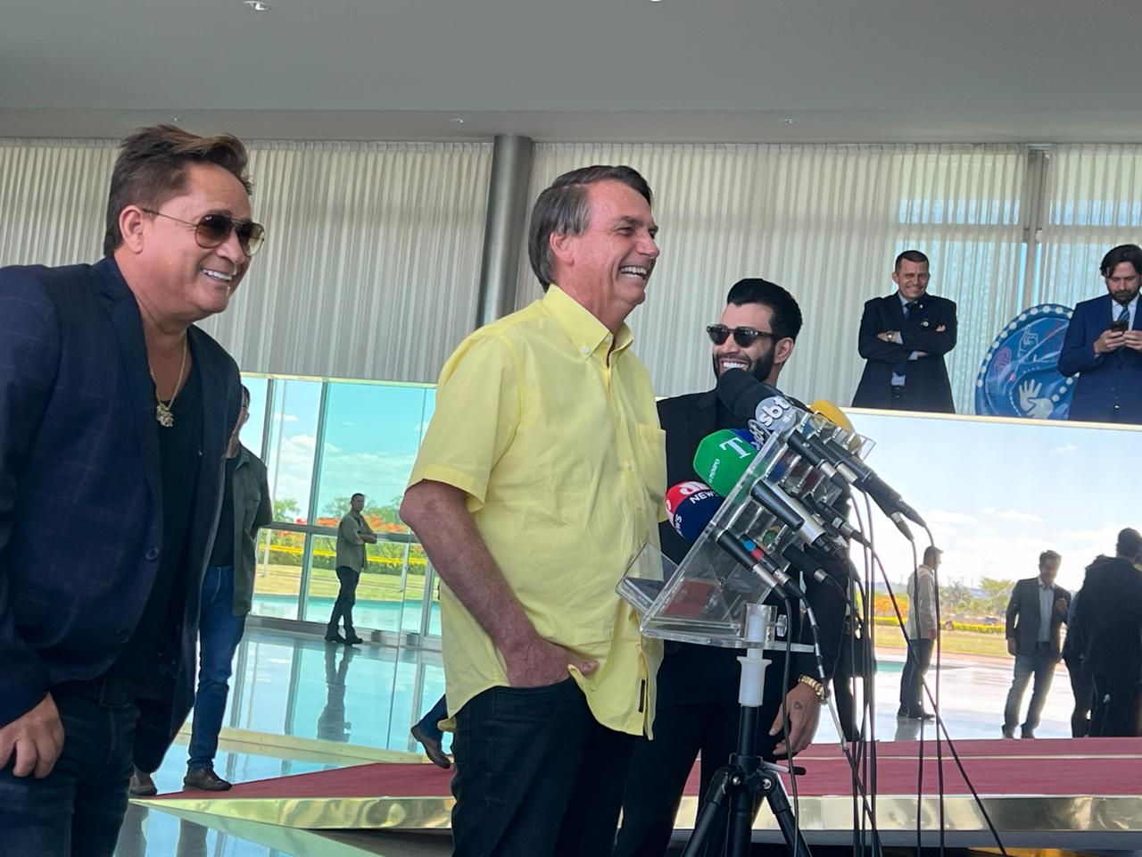 O presidente Jair Bolsonaro (PL) esteve, no início da tarde desta segunda, ao lado dos cantores sertanejos Leonardo e Gusttavo Lima, que declararam apoio à reeleição dele. O encontro, no Palácio do Planalto, foi registrado pelo Ministro das Comunicações, Fábio Faria, que publicou imagens nas redes sociais.
