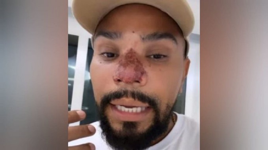 No vídeo, a médica explica que “ele realizou um procedimento com outro profissional e teve uma intercorrência: uma obliteração de vasos e um princípio de necrose”. Nas imagens, é possível ver o nariz de Naldo inchado e com manchas escuras.