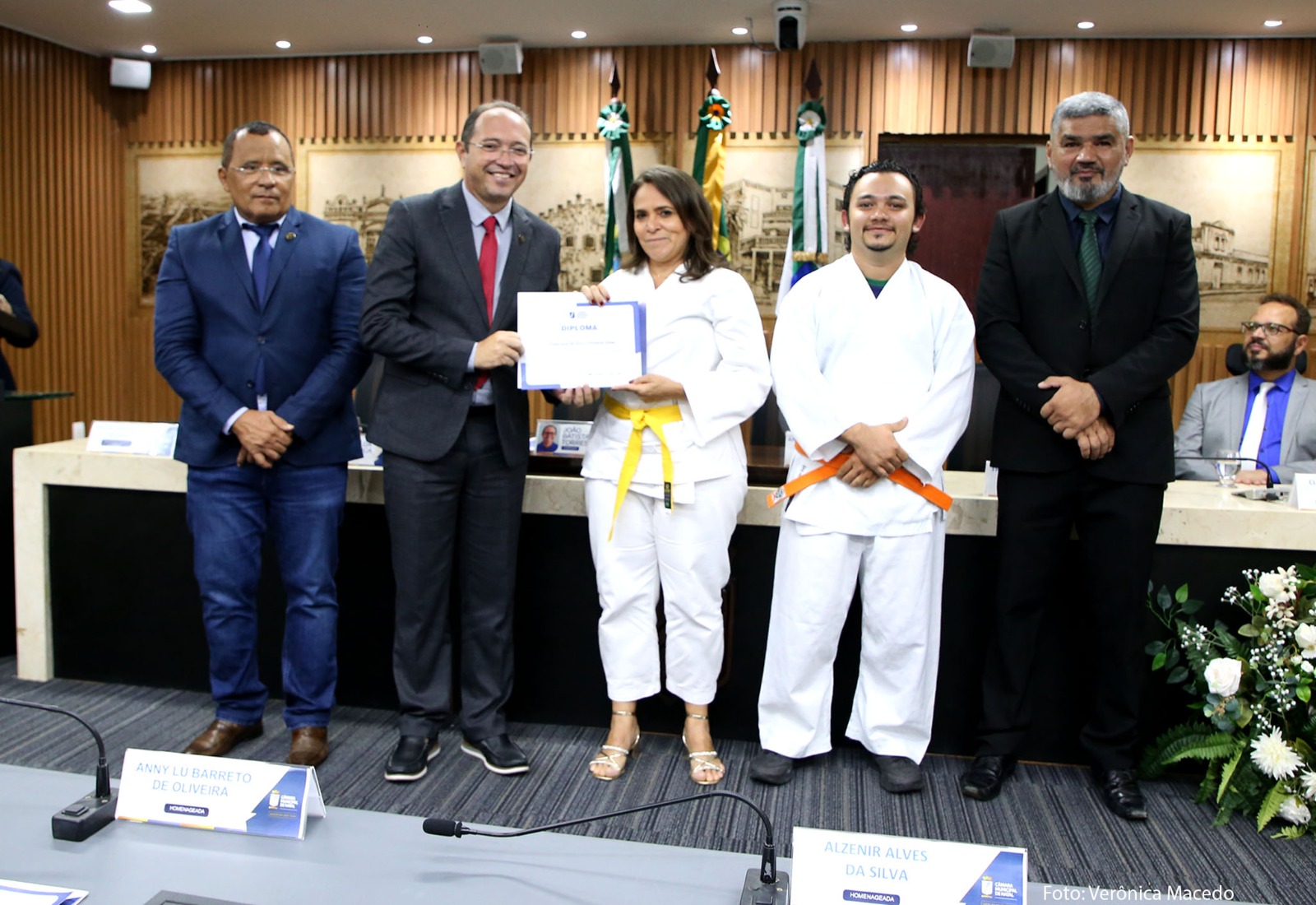 A solenidade contou ainda com a participação dos vereadores Cleiton da Policlínica, Daniel Santiago, Herberth Sena, Kleber Fernandes, Preto Aquino e Tony Henrique.