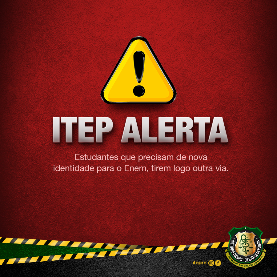 O Exame Nacional do Ensino Médio (Enem) 2022 está marcado para os dias 13 e 20 de novembro. Pensando nisso, o Instituto Técnico-Científico de Perícia (Itep/RN) alerta para que os estudantes que precisam tirem logo uma nova via da Carteira de Identidade.