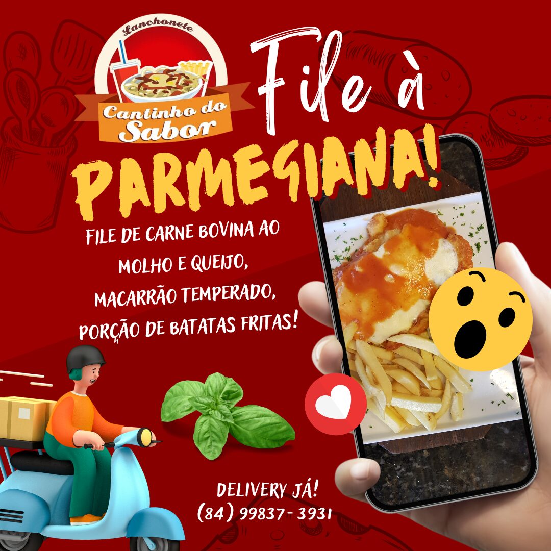Lanchonete Cantinho do Sabor serve o melhor Filé a Parmegiana de Caicó! Peça já o seu pelo delivery: (84) 99837-3931