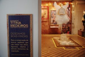 A exposição, com expografia de João Marcelino e curadoria de Arlindo Bezerra e César Ferrario (viúvo), desdobrou-se em três cenas: Arquiteturas das Personagens, Portais da Memória e Anjo da Coroação. No centro, o Anjo da Coroação, inspirado na obra de Ivan Simplício, remeteu à infância de Titina coroando Nossa Senhora de Lourdes. Figurinos originais e fragmentos vibraram, abrindo caminhos de reflexão e emoção.