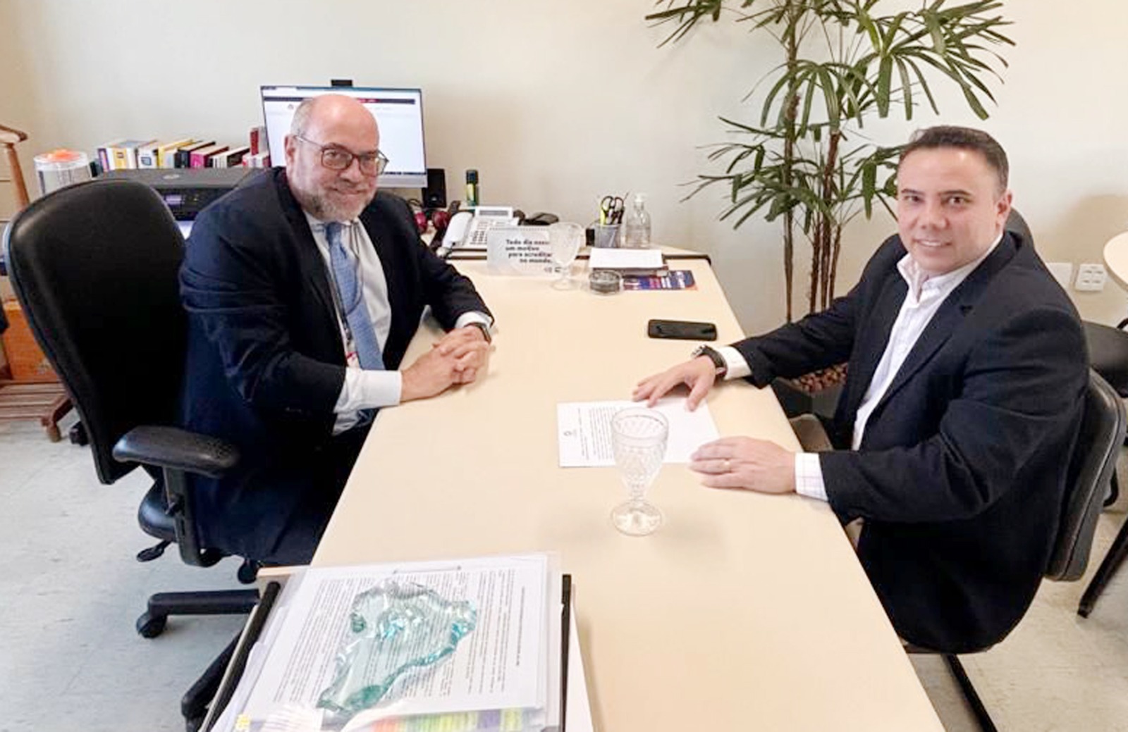 Durante a reunião, Thyago Cortez e o diretor de Recursos Humanos da Assembleia Legislativa de Minas Gerais (ALMG), Theophilo Moreira Pinto Neto, trocaram informações sobre a integridade do servidor público, a estrutura e o funcionamento das diretorias, além das questões de saúde mental no Serviço Público.