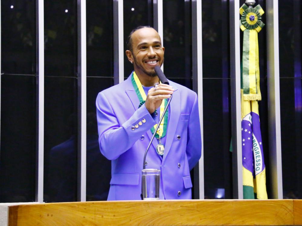 Em um plenário lotado, o piloto de Fórmula 1 Lewis Hamilton recebeu nesta segunda-feira (7) o título de Cidadão Honorário Brasileiro pela Câmara dos Deputados. Por se tratar de resolução, o texto já foi promulgado pela Câmara durante a sessão sem precisar passar pelo Senado.