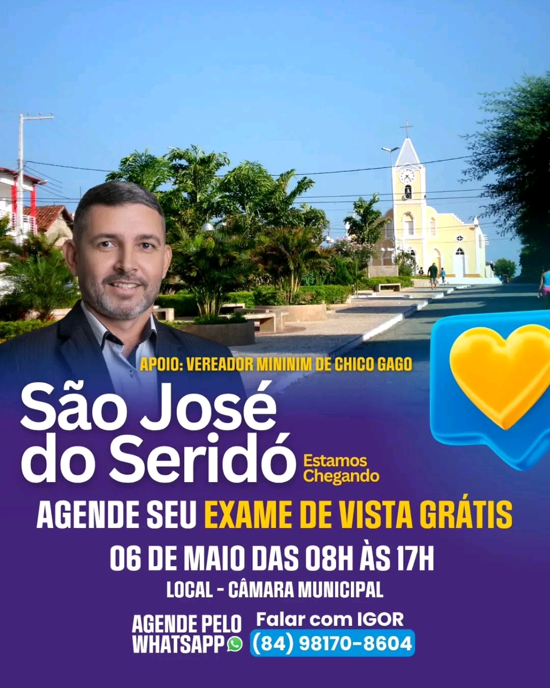 Devido ao sucesso O projeto Boa Visão estará de volta a São José do Seridó no próximo dia 6 de Maio com ação de exames de vista.